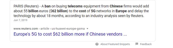 特朗普有这么一段讲话:“5G网络将与21世纪的美国的繁荣和安全紧密相联。我们不能允许其他国家未来重要的工业领域超过美国……5G竞赛是一场美国必须赢的比赛……明年美国将有世界上最多的5G频道,因为你们知道有人已经走在我们前面。可能我们早就应该这样做,需要防止5G被其他国家所掌握。”