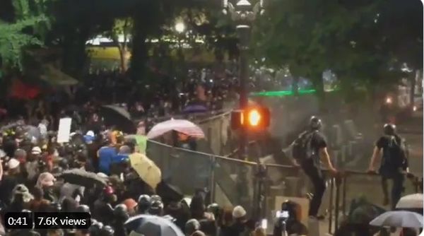 RT报道:在抗议者推倒法院外的围栏后,警方宣布波特兰发生骚乱