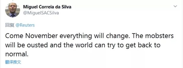 还有网友表示,“到了11月,一切都将改变。这些犯罪集团成员们将被赶下台,世界将试着回归正常。”↓