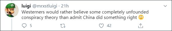 对此,有人一针见血地评论道,“西方人宁愿相信某些毫无根据的阴谋论,也不愿意承认中国有些事情做对了。”