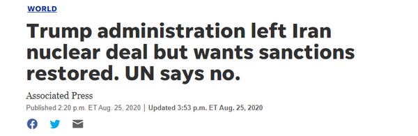 最后,从一些美国主流媒体早前的报道来看,特朗普当局会在制裁伊朗的事情上连续在联合国栽跟头,其实都是特朗普当局自己惹出来的,甚至可以说是作茧自缚。