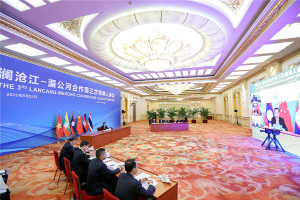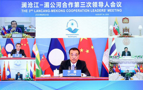 国务院总理李克强8月24日上午在人民大会堂出席澜沧江—湄公河合作第三次领导人视频会议。李克强和老挝总理通伦共同主持会议。柬埔寨首相洪森、缅甸总统温敏、泰国总理巴育、越南总理阮春福出席。