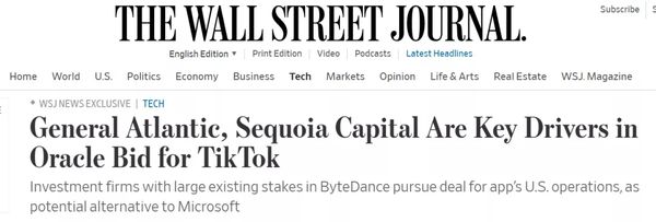 美国《华尔街日报》的消息还称,甲骨文之所以会参与“收购”TikTok并得到后者青睐,与红杉资本和泛大西洋资本这两家该公司的海外投资方力推有关。
