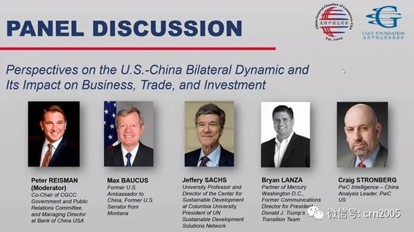 萨克斯在美国中国总商会的美中关系网络论坛上评美中关系