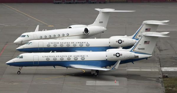 克拉奇不够资格调用空军一号(军用型号VC-25),国务卿级别的波音757(军用型号VC-32)可能也不够资格,但美国政府专机队还有波音737(军用型号C-40)、湾流V/550(军用型号C-37A/B)。政府专机队的飞机属于军用飞机,拥有独特的蓝白涂装,就是给官员出访时用的,其中C-37与克拉奇调用的无标记“湾流V”很相似。
