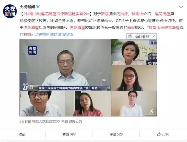 论文提到,作为一种中药方剂,连花清瘟对一系列流感病毒具有广谱抗病毒作用和免疫调节作用。5月,钟院士称,他们做了试验对比,有证据显示连花清瘟胶囊对新冠病毒肺炎有效果。