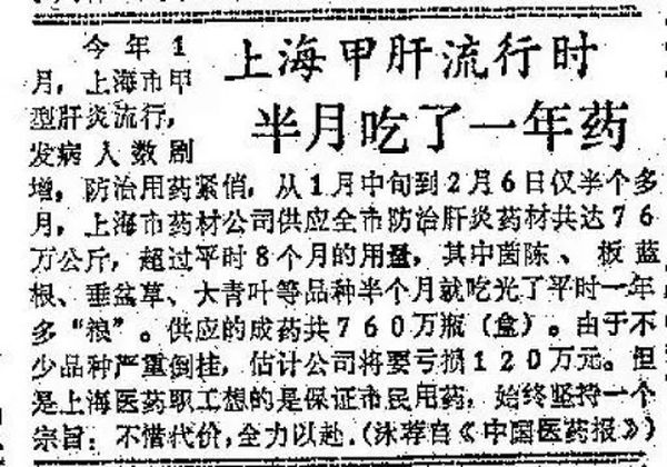 1988年,上海市甲肝传染病,上海市卫生局和中医学会拟订出以板蓝根为基本处方的药方,板蓝根作为官方推荐的“神药”初次大出风头。