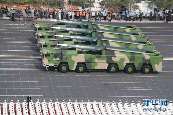 去年国庆阅兵中展示的“东风-17”导弹,装备有乘波体弹头 图源:新华网