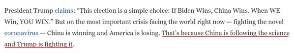 不过,看到中国防疫成功后如此别扭委屈、甚至抑郁躁狂的,并不只有NBC的这篇报道。英国BBC的驻华记者John Sudworth——就是那个曾经抹黑咱们中国贵州用来打击犯罪和天眼系统和给英国嫖娼特务郑文杰洗地的那位——也在今天一篇关于“中国更希望谁来赢得美国总统大选”的文章中,对中国的防疫成功大吐酸水,说什么对于中国来说,特朗普和拜登谁赢已经无所谓了,因为中国更看重美国政治体制在此次疫情中暴露出的无能。