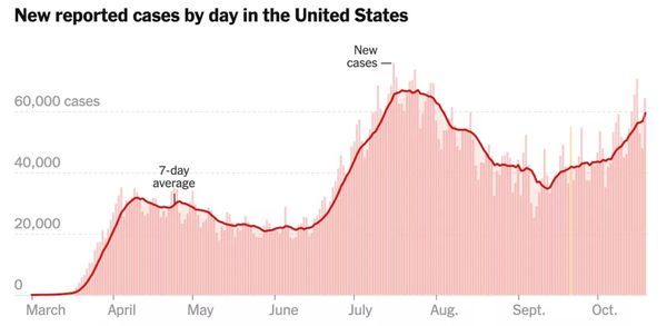 △美国每日新增确诊病例数趋势 图片来源:《纽约时报》