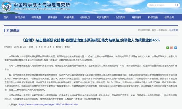 28日,中科院大气物理所在其官网提前公布了《自然》杂志将发表这项研究的消息,并明确指出:这一研究将为我国“碳中和”核算和国际谈判提供有力的科学依据。