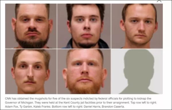不久前在美国闹得沸沸扬扬的针对密歇根州州长惠特默的绑架案件,犯罪嫌疑人均与一伙美国白人民兵组织有关。在美国警方逮捕的13名嫌疑人中,其中7人涉嫌谋划袭击密歇根州议会大厦,并试图绑架州政府官员。