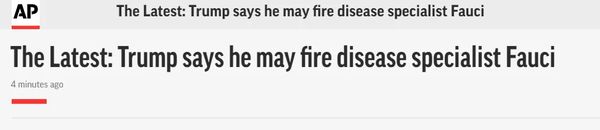 10月19日,在奔赴关键摇摆州亚利桑那州参加竞选集会前,特朗普曾大肆攻击福奇,称他是“灾难”,说“假如我当初听取他的建议,那么现在的死亡病例会是50万”,后来,他又将50万改为“70万或80万”。特朗普讽刺福奇这个“好好先生”在国家过敏症和传染病研究所所长这个位置上待太久了,“他已经干了500年”。福奇自1984年起担任这一职务,服务过6任总统。
