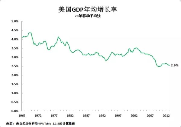 现在的美国有些衰退,美国的经济增长从上世纪就开始下滑,转折点是这个世纪前十年出现的。在阿富汗和伊拉克的战争肯定会动摇美国的力量和在全球的形象,这一点非常重要。由于起源于美国的一次全球金融危机——2008年金融危机,很多美国人都经历了经济滞胀期。而且自从1980年以来,可以看到的是,很多的美国人越来越不满意了。