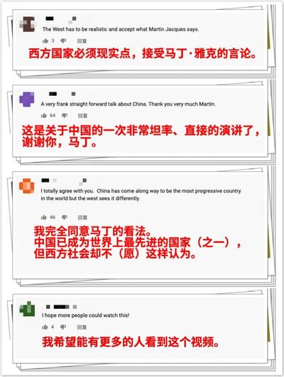 视频的最后,雅克指出,西方国家需要从思维深处改变,开始尝试理解中国与西方的不同之处,并承认中国的成功:“中国是一个非同寻常的国家,与其将其视为威胁,不如更多了解中国,并对其保持好奇之心,而且享受这个过程。”