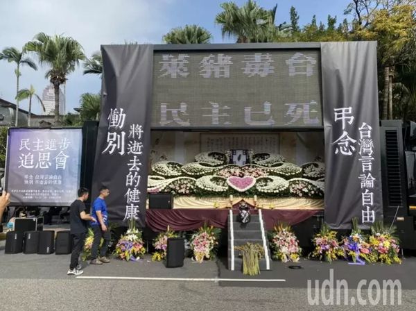有抗议民众在活动现场设灵堂、摆活猪,图自《联合报》