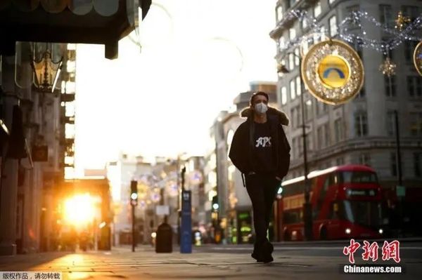 资料图:当地时间11月5日,英国伦敦,市民戴口罩上街。从5日凌晨开始,英国进入第二次全国性封锁限制阶段。