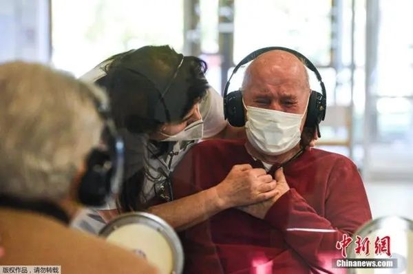 当地时间11月11日,意大利威尼斯,疗养院设立“拥抱屋”,方便老人在有防疫保护措施的前提下、与亲人见面。