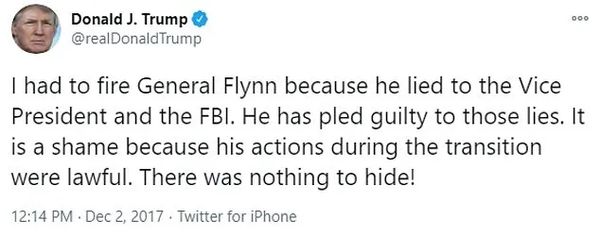感恩节前夕,获得美国总统特赦的不仅仅是火鸡,还有特朗普的前白宫国安顾问弗林。今天下午特朗普一条推文,舆论瞬间炸锅!