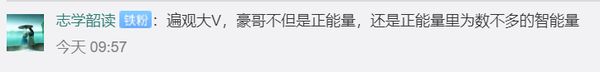 还有战友说:豪哥不但是正能量,还是智能量。正能量是本分,占豪会一以贯之;智能量,则是心之所向,占豪会带着战友们的鼓励和鞭策,努力提高自己。