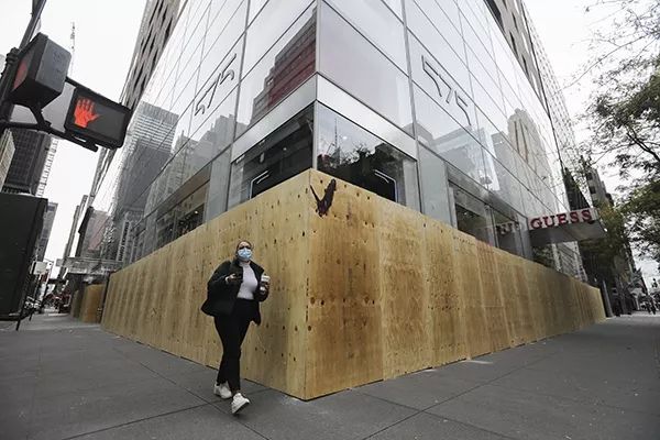 11月1日,在美国纽约第五大道,由于担心发生骚乱带来损失,不少商店和写字楼开始加强防护和安保。图|新华社