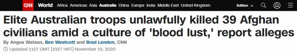 本月早些时候,一份报告发现,25名澳大利亚士兵涉嫌在2009年至2013年间谋杀了39名阿富汗平民和囚犯。