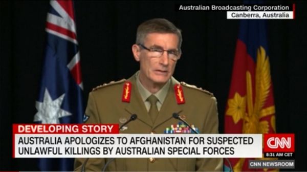 澳大利亚国防军司令安格斯·坎贝尔,就报告中所称的行为“真诚而无保留地”向阿富汗人民道歉。