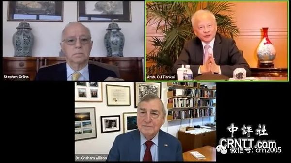 近两个月很少在美国公开场合露面的崔天凯3日出席华府智库中美研究中心(ICAS)举办的主题为“美国大选后的中美关系前景”在线年会。他与新兴大国与守成大国冲突的“修昔底德陷阱”的论述者、哈佛大学教授阿利森(Graham Allison)同场对话。