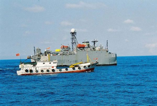 2009年的“无瑕号事件”就是一个很好的例子,当时美国海军观测船“无瑕”号正在我们的专属经济区内收集情报,被5艘中国籍船舶包围,其中就有两艘渔船,最后“无瑕”号只能草草结束了任务。