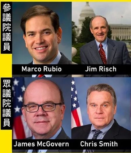其中提出和推动这项涉港议程的人员包括众议员吉姆·麦戈文、克里斯·史密斯,参议员马可·卢比奥、吉姆·里施。