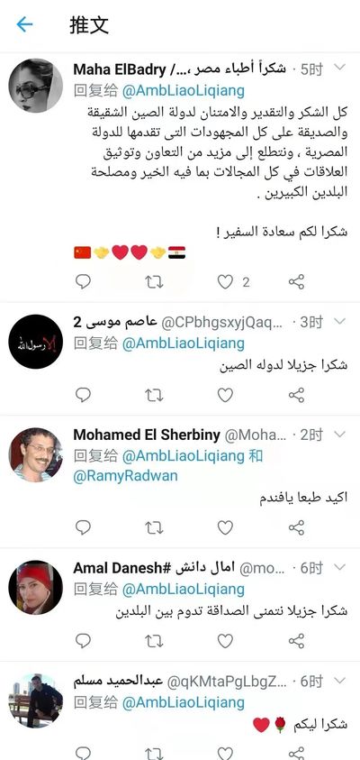 尼罗河国家电视台、“国家回声”电视台、特别新闻电视台对该活动滚动直播,《金字塔报》、《共和国报》、《今日埃及人报》、《七日报》刊文五十余篇,盛赞中国言必信、行必果;感谢中国疫苗抵埃,造福埃及人民,为非洲和阿拉伯世界带来希望。廖大使推特等使馆海外社交媒体相关内容浏览量超过30万,点赞量破万。埃网民在廖大使推特账号上留言,表示“患难见真情”,伟大的中国人民在困难面前始终与埃及站在一起,这是真朋友的体现,“埃中友谊万岁”。