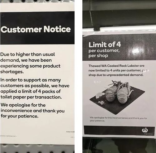 有澳大利亚网民比较了龙虾限购和卫生纸限购的通知 图源:社交媒体