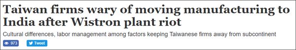 “但这起暴动,却让台商对‘印度制造’的疑虑再起。”