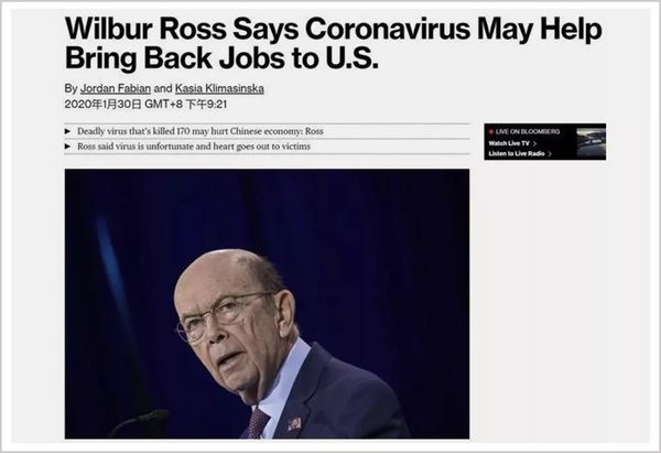 美国商务部长威尔伯·罗斯公开宣称:新冠疫情将有助于制造业和工作回流美国!