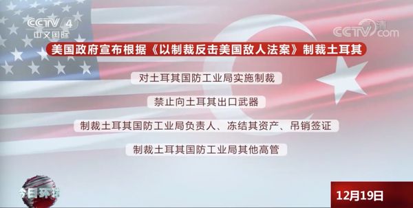 除了越南,美国的制裁大棒还挥向了北约盟国土耳其。12月14日,美国政府宣布根据《以制裁反击美国敌人法案》(CAATSA)制裁土耳其。
