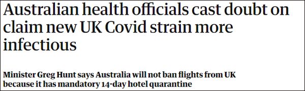 此外,多名澳大利亚医学专家认为,尽管有迹象表明英国变异毒株比其他毒株更具传染性,但“证据仍相当有限”。