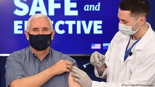 ▲当地时间12月18日,美国副总统彭斯和妻子通过电视直播公开接种新冠疫苗,以“增强疫苗在美国人心中的安全性和有效性。”