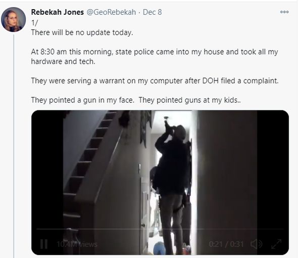 (图为被单位开除后又被持枪警察逮捕的美国疫情吹哨人之一的瑞贝卡·琼斯)