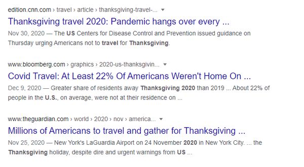 (图为美国媒体对今年感恩节和圣诞节期间美国民众不顾疾控部分劝阻,坚持出行的报道)