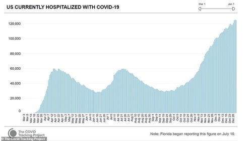 在12月31日,美国住院人数创下历史新高,达到125379人,这个数据比两个月前激增了163%。