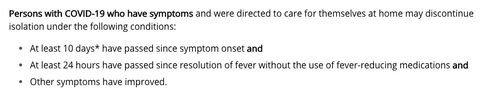 只要雇员满足结束在家隔离的三项条件,就可以返回工作岗位: