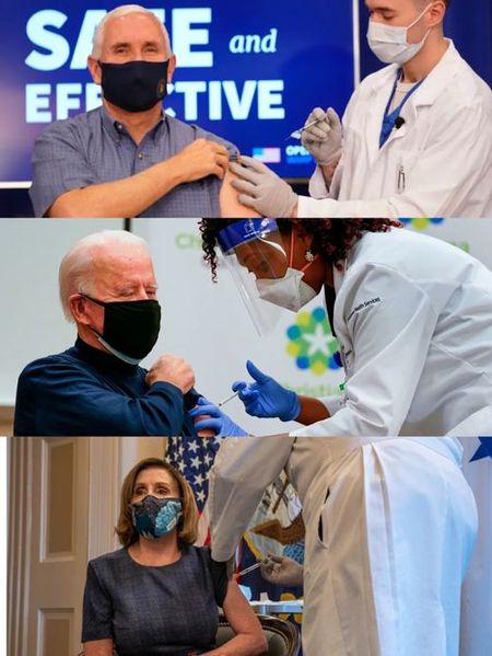 去年12月12日,辉瑞的新冠疫苗得到FDA批准,紧接着从美国副总统彭斯、到当选总统拜登、还有国会众议院议长佩洛西都公开注射了疫苗。