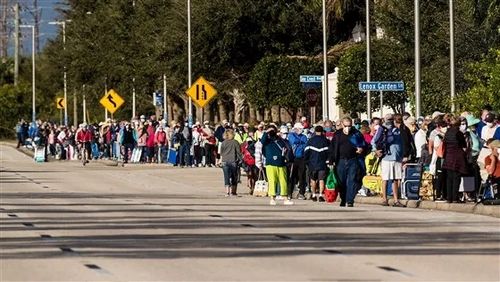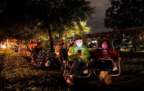 佛州迈尔斯堡连夜等待接种疫苗的老年人