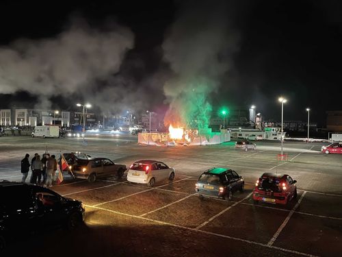 荷兰于尔克市,示威者焚烧了当地一座新冠检测站 图源:社交媒体