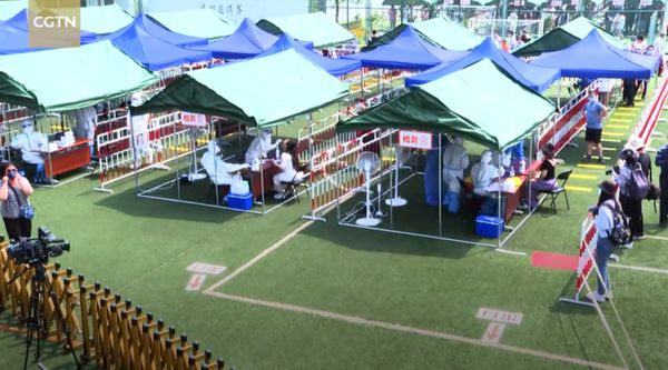 ▲2020年6月北京大规模核酸检测(中国国际电视台报道截图)
