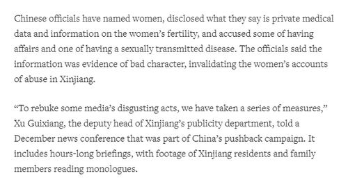 比如在报道中,路透社大大“简化”乃至省略了大量汪文斌之前给出的信息,虽然写到了发言人拿出医疗信息说一名女子说谎,但发言人澄清的到底是什么谣言却被省略。而且路透社还“阴阳怪气”地宣称汪文斌拿出的是这些女子“隐私的医疗信息”。而对于这些女子家人的澄清,路透社则故意强调说这都是新疆官方拿出来,想以此暗示这些信息都是不可信的。