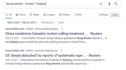 另外,耿直哥还查询了在2月4日到2月23日期间路透社所有关于新疆的报道,结果虽然查到了两篇在时间上相符的涉及新疆的报道,但这些报道的重点都与发言人给出的涉及那两名女子的澄清信息无关——哪怕2月23日在那此发布会上涉及新疆的问题,还是路透社自己提出的,发言人的回答也是直接说给路透社的。