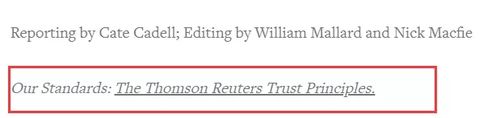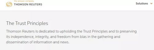 (图为路透社在其每篇报道下都在标榜的“专业准则”)