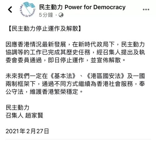 前面提到过,“民主动力”是所谓“初选”的具体承办者。2月27日,它在社交平台宣布解散及即日起停止运作。