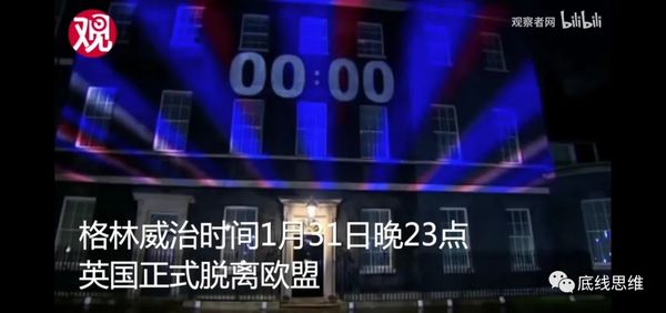 格林威治时间2020年1月31日晚23点,英国首相府官邸前倒计时归零,英国正式脱离欧盟(观察者网视频截图)